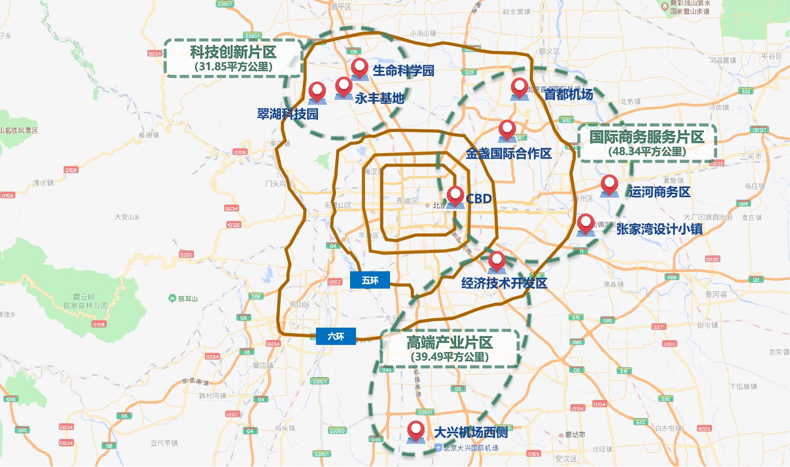 朝陽區:國貿CBD、金盞國際合作服務區