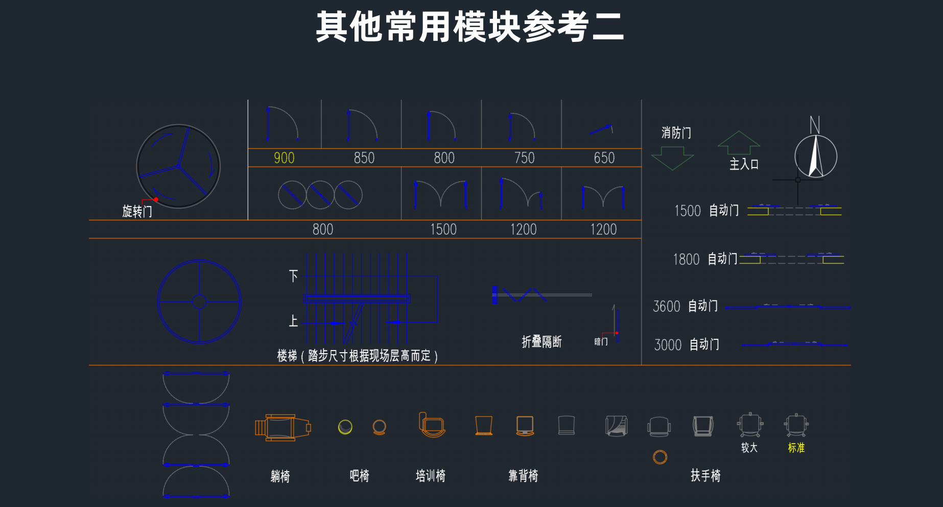 朝向底層平面圖標指北針(其它層平面圖上不標朝向)